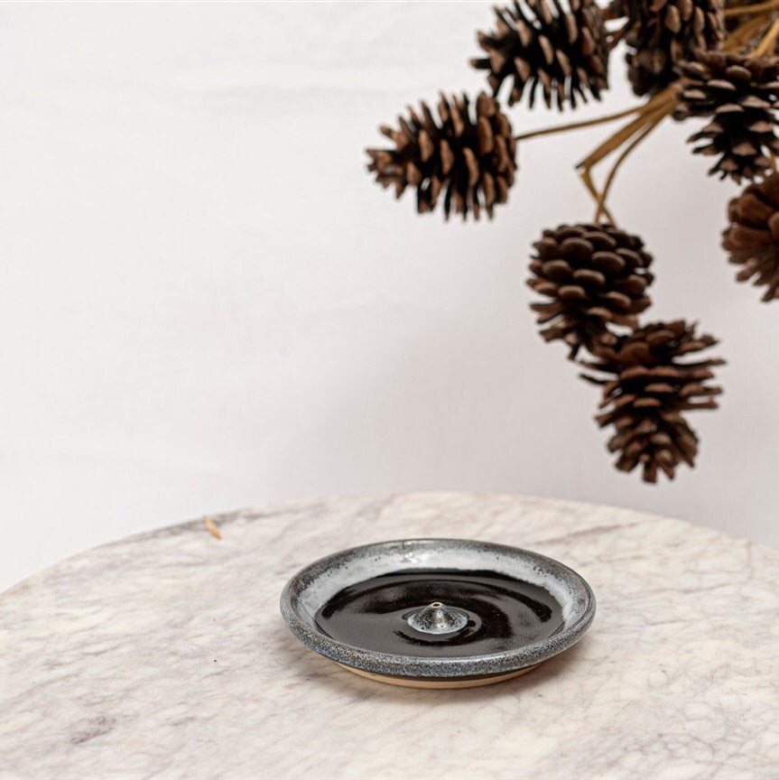 Dripped Black Stoneware Incense Holder, Stoneware Incense Burner, Handmade Incense Dish, Incense Stick Burner, Incense Stick Holder.