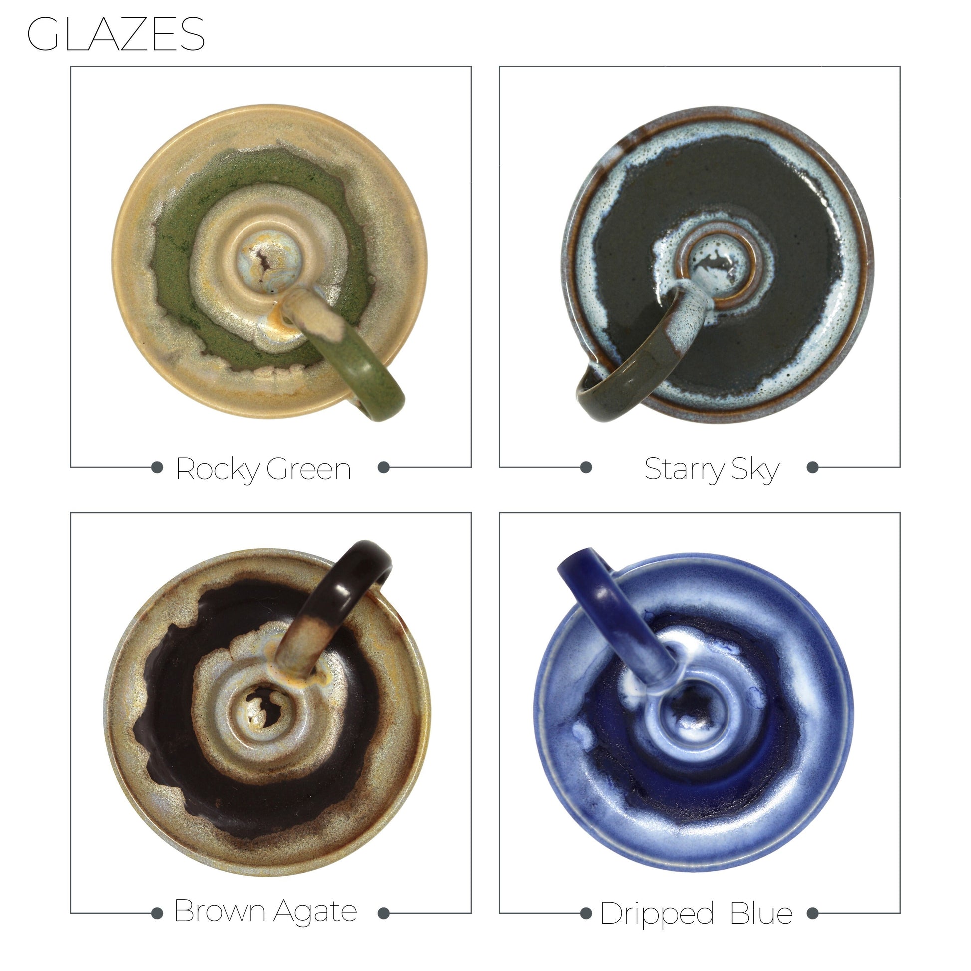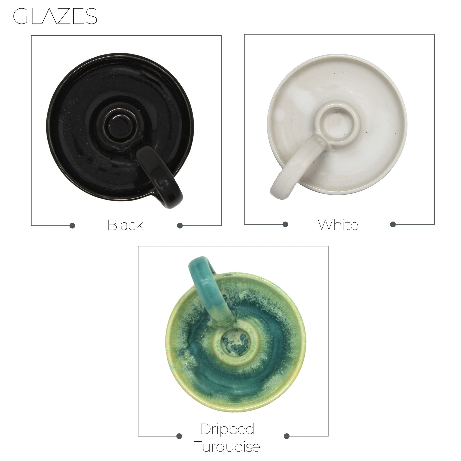 All our pieces are made in our small shop in Douglasville, Georgia. Each piece is thrown and glazed individually, therefore, they will be similar in size, shape and color, but natural variations will occur. That's what makes handmade pieces so special!